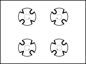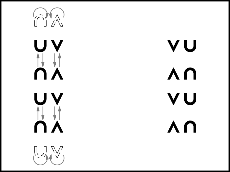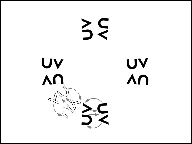 Izpildot 4 reizes 1. kustību, tie pāri, kas virzījās diagonālē, tagad veido aplīšus skatuves stūros; tie pāri, kas veidoja aplīšus, dejo uz pretējiem stūriem, kā parādīts 12.zīm.