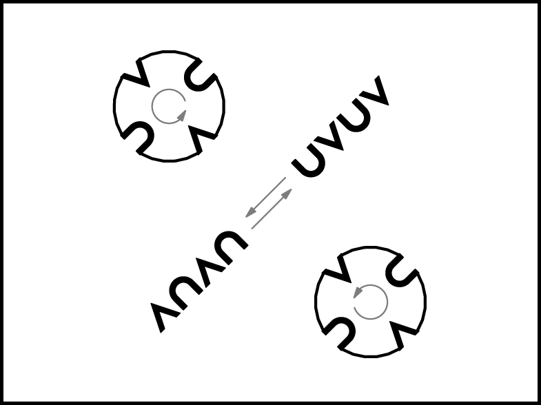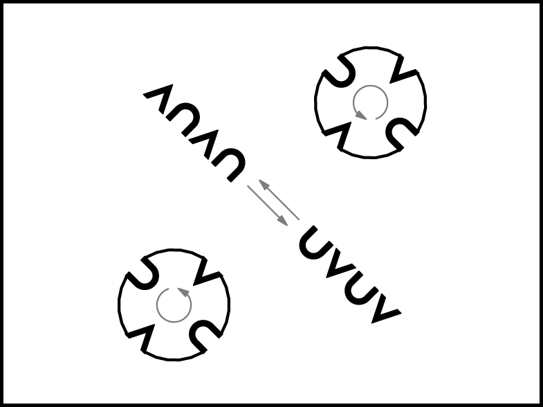 Kustību izpilda 4 taktīs pa pāriem, meitenes kreisā un zēna labā roka sadota lejā. Uztaktī strauji pagriežas viens pret otru, sadotās rokas vēzē pret dejas ceļu.
