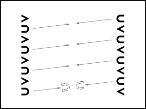 Izpildot 4 reizes 1. kustību, dejotāju kolonnas apmainās vietām – dejo kā parādīts 15.zīm.