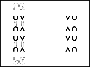 Izpildot 2 reizes 1. kustību, pāri 1 reizi apgriežas kreisajos elkoņos. 16.takts beigās nostājas, kā parādīts 14.zīm.