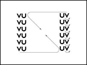 Pāri krustiskajā satvērienā ar 4 polkas soļiem izveido 2 kolonnas skatuves centrā (7.zīm. bultas).