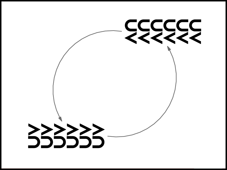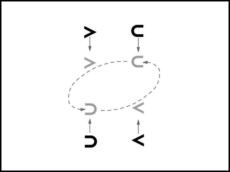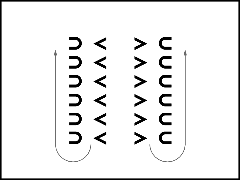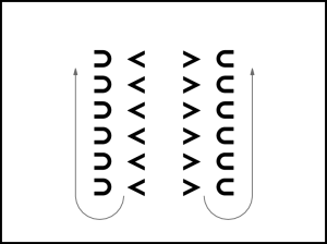 Izpildot 4 reizes 1. kustību, dejotāji izveido apli un virzās pa dejas ceļu (1.zīm.). 16.takts beigās zēni nostājas iekšējā aplī ar muguru pret centru, meitenes – pretī saviem zēniem ar seju uz centru (2.zīm.).