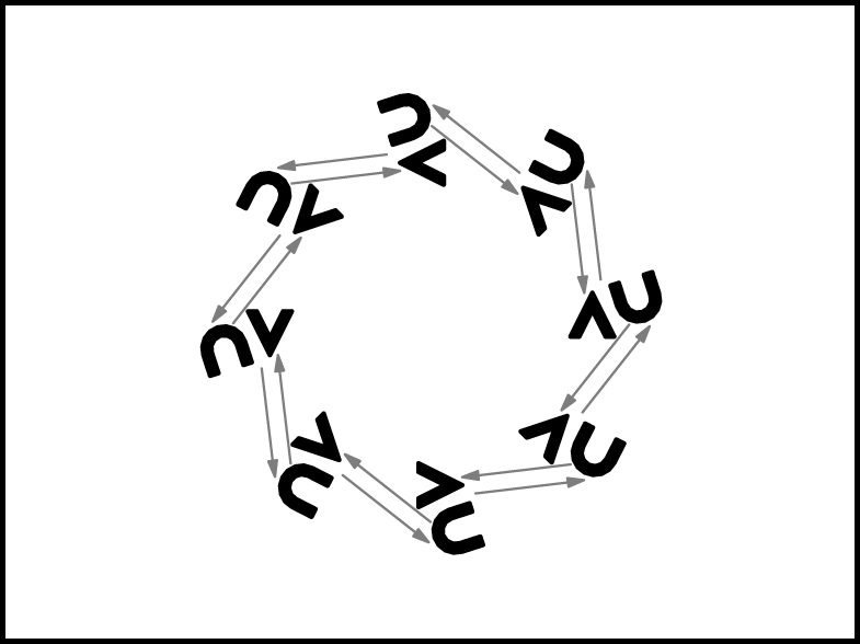 Ar 6 gājiena soļiem visi pāri veido apli (6.zīm.). 16.takts beigās meitas pagriežas ar seju uz centru, puiši – pretī savām partnerēm.
